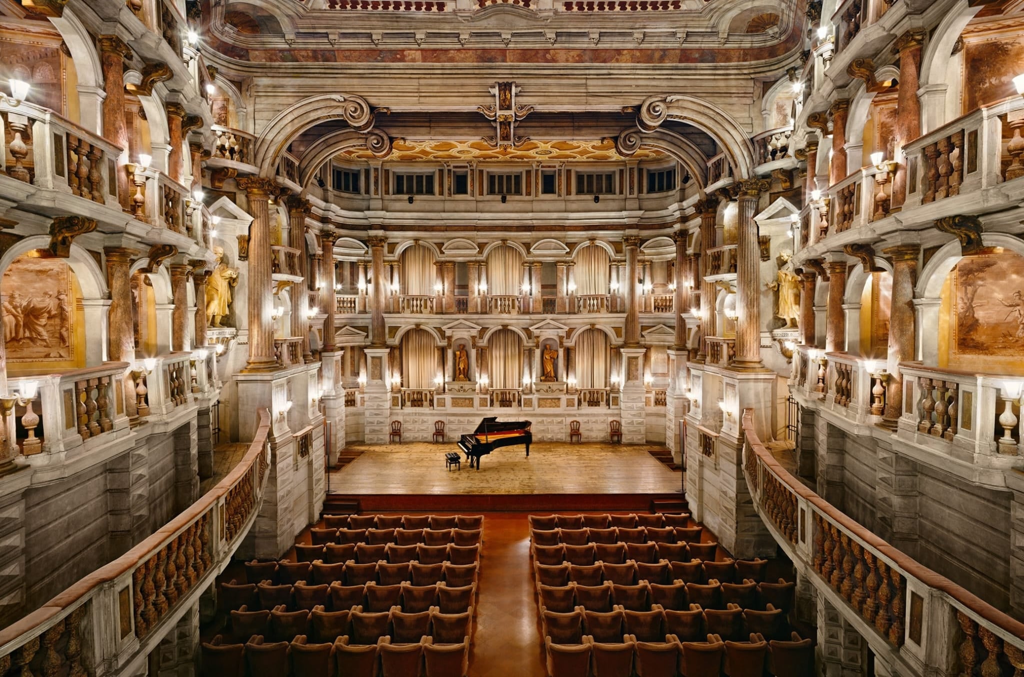 Sergide, Batı mimarisinin zirvesi olan; Roma’nın kusursuz geometrisi Pantheon ve Rönesans’ın sarmal estetiği Villa Farnese de dikkat çeken eserler arasında yer alıyor. İtalya’nın en önemli opera binalarından tarihi La Fenice Tiyatrosu da, tüm ihtişamıyla Ertuğ’un kadrajından sanatseverlerle buluşuyor.